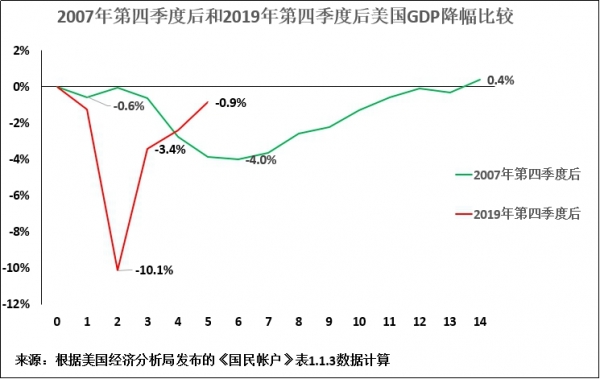 详细分析这种变化就会明白,美国应对2008年金融危机的刺激计划在实践中被证明过于无力,无法拉动经济快速复苏。如图4所示,美国用了三年半时间才使其GDP恢复到金融危机前的水平。