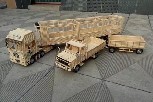 在日常生活中,很多人位了方便,都会使用一次筷子。但是大量使用一次性筷子不仅会浪费森林资源,还可能造成环境污染。然而一名男子将一次性筷子进行再利用,用其做成各种货车模型,将其变成工艺品。