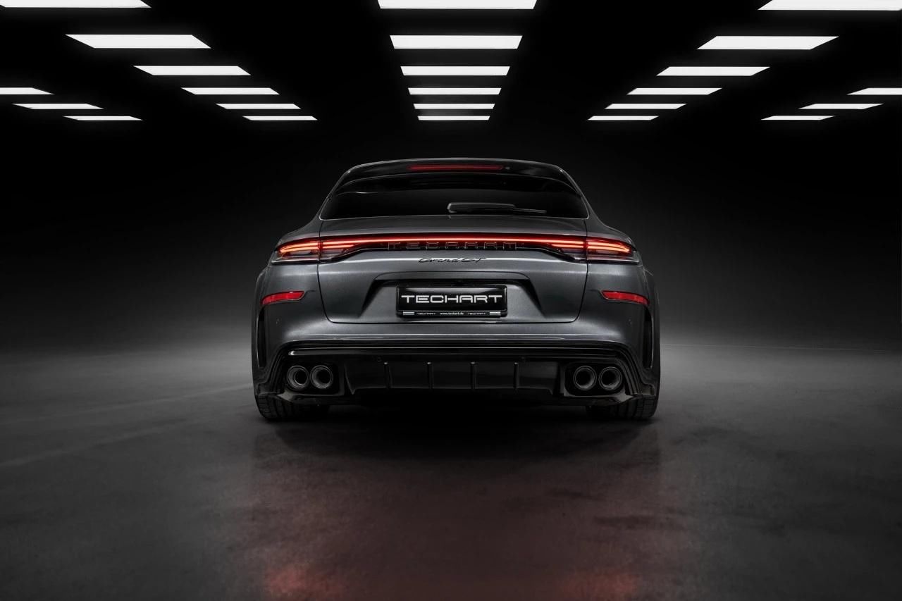 【这应该是旅行车的最终形态了,TechArt改装的帕拉梅拉瓦罐】著名的保时捷改装商TechArt最近为Panamera推出了一个"GrandGT"计划,该计划几乎涵盖了这款豪华行政轿车和旅行车的各个方面。在外观上,TechArt通过车身的延展套件,使得前翼子板加宽了50毫米,后翼子板加宽了80毫米。 新的前保险杠具有更大的进气口,可优化气流并改善刹车的冷却,而且还集成了前唇。碳纤维发动机盖带有中央出风口,隆起的线条充满肌肉感。碳纤维后扩散器包裹着钛合金排气尾嘴。对了,还有碳纤维的尾翼。一套21寸或者22寸的轮毂有助于令外观焕然一新。