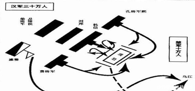 《史记·高祖本纪》说:"五年,高祖与诸侯兵共击楚军,与项羽决胜垓下。淮阴侯将三十万自当之,孔将军居左,费将军居右,皇帝居后,绛侯、柴将军在皇帝后。"