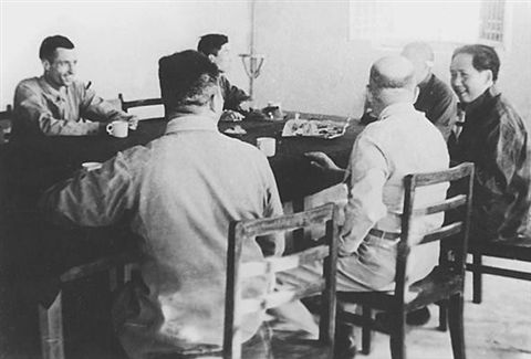 谢伟思和迪克西使团其他成员同毛泽东一起座谈讨论