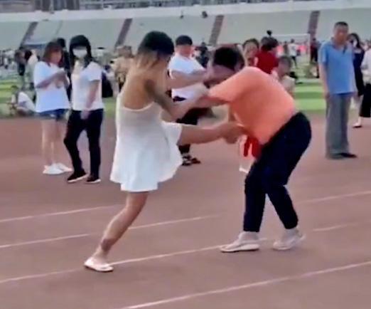 但当女子还嘴之后,这位大妈直接动起了手,双手薅着女子的头发,膀大腰圆的体重和纤细苗条的女子形成了鲜明的对比。