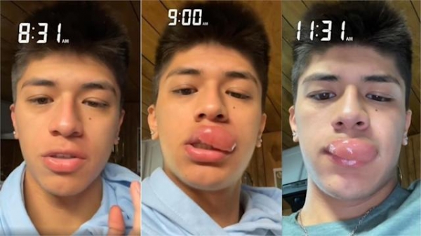 国外一名网友加尔萨(Jordy Garza)日前喂猫时,不幸被黄蜂螫中上嘴唇,接下来的几个小时内,随着伤口周围越肿越大,他也用手机记录嘴唇暴风肿胀的过程,并将视频发上网,意外吸引千万网友一起紧盯他的嘴唇变化。