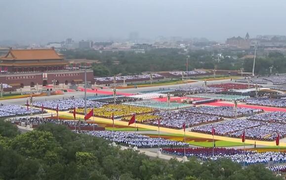 7月1日凌晨,天安门广场人民英雄纪念碑两侧,各有8辆放飞车一字排开,10万羽信鸽正在休息。
