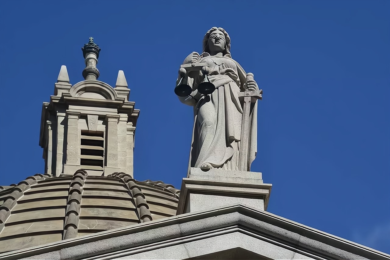在古罗马的神话中,执掌正义的是一位左手提天平右手持利剑,同时又蒙着眼的女神,就像下图这样。