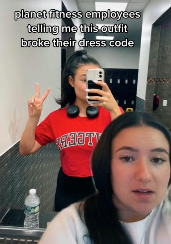 据英国《每日星报》7月2日报道,6月29日,美国一位名叫阿兰娜(Alana)的用户在某短视频平台上称,她穿着红色t恤和黑色紧身裤去健身房时,被工作人员警告上衣太短要遮盖起来,让她当场羞愧不已。