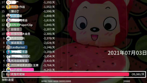 在翻车后,党妹连续几天掉粉数都位于榜首,在事件彻底发酵后掉粉掉的就更猛了,争议发生后两天,党妹先后掉粉加起来已经有10万左右,光5日就掉粉近8万,是全站掉粉最多的UP主,掉粉数量断层,口碑也是一落千丈。