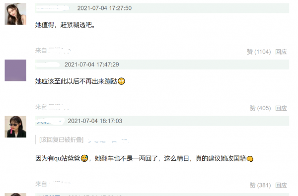 在看过了党妹发布视频后的一系列操作和被扒出的黑历史后,有很多网友都在喊话让党妹赶紧换国籍,还有网友直接说了:“退出中国国籍,钱不够我来出。”、“建议党妹和她的六百万粉丝都交250退国籍。”表达着对她的强烈不满。
