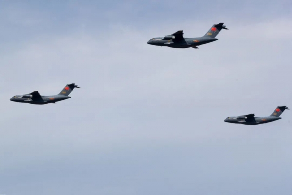 2017年7月30日,庆祝中国人民解放军建军90周年阅兵在朱日和训练基地举行,由1架运-20和2架运-9组成的运输机编队接受检阅。