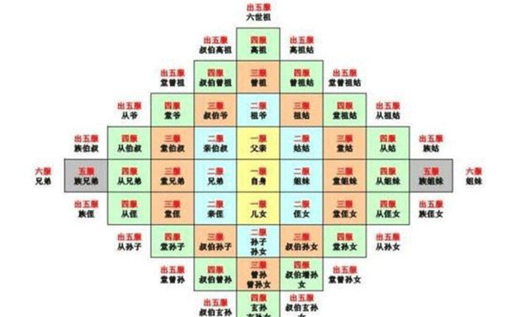所谓九族,一般指父族四、母族三、妻族二,父族四是指姑之子(姑姑的子女)、姊妹之子(外甥)、女儿之子(外孙)、己之同族(父母、兄弟、姐妹、儿女);母族三是指母之父(外祖父)、母之母(外祖母)、从母子(娘舅);妻族二是指岳父、岳母。