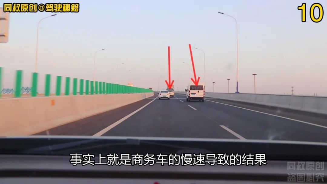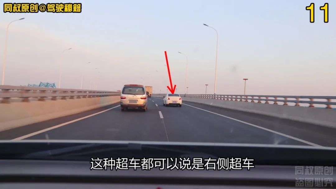 白色轿车在跟行了一段时间,最后也是忍不住,选择了向右变道超车。严格讲,无论是中巴车还是白色轿车,这种超车都可以说是右侧超车。因为都是左侧车道跟行,然后变道追超,最后变回到左侧车道,符合三个步骤的超车定义。