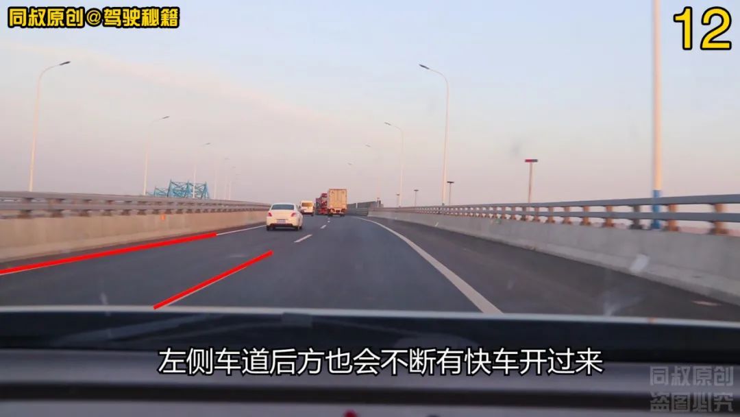 但是长时间跟行在慢车后面就安全吗?前方即将转入小下坡路段,左侧车道后方也会不断有快车开过来,长时间慢慢跟行在慢速车后面就会有被追尾的风险。