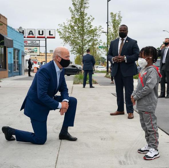 除了重大场合外,拜登在会见老人或者和儿童交谈时,也喜欢做下跪姿态。据悉,此举一是为了显示他身体灵活硬朗,二是表现自己的亲民。