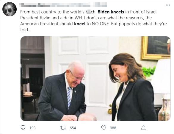 值得一提的是,除了突然卡壳失语、踩空摔倒外,突兀下跪似乎已经成了拜登的第三大标签。