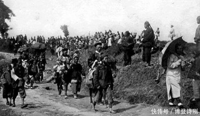 图为一名官员下基层视察的场景,排场很大。所到之处,人山人海。