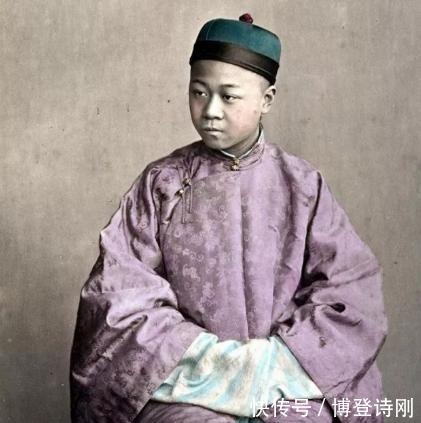 图为一名知府的儿子,那时候的富二代,穿着华丽的衣服。