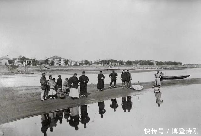 图为一名县太爷河边钓鱼,芝麻小官的排场如此之大。