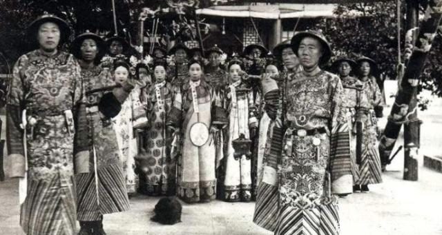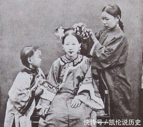 晚年的瑾妃。瑾妃后面那人是咋回事?跪在桌子上?