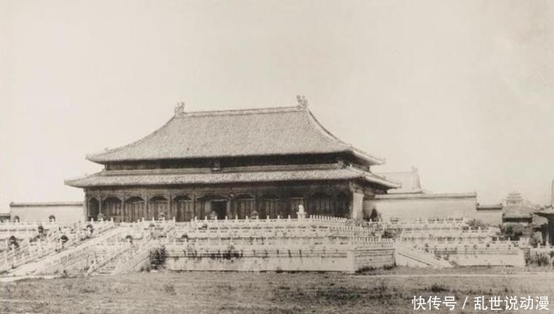 晚清时期,太和殿正宫,近处还有一个人,不知道是侍卫还是太监,与远处的太和殿相比较,足见其宏伟。