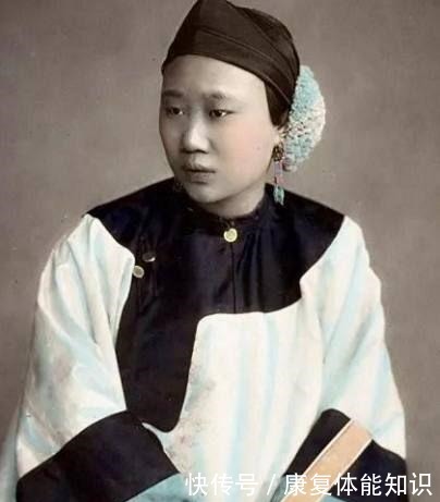 晚清时期的一名女子,手里拿着折扇,这是大户人家的女子,穿的都比较好,只不过对拍照不是很了解,所以都没有笑容