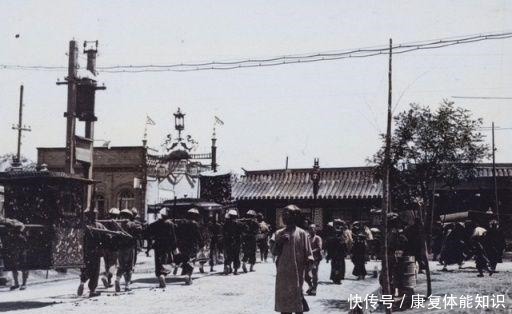 路上一队结婚的队伍,四抬大轿接了新娘,这种排场也要是有钱人才能办的起,普通人家是办不起的