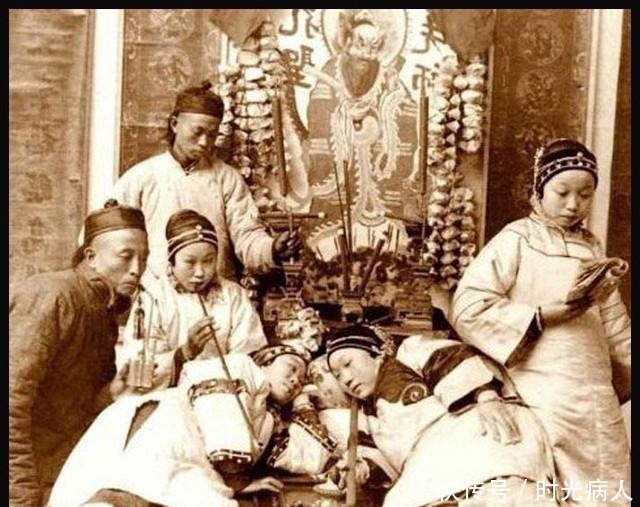 鸦片严重损害人的身体健康和精神生活,它是我国一百多年前苦难的根源,让我们曾经遭受了其它国家的羞辱。照片为一群贵妇在圣人孔子的画像前面吸食鸦片,让人非常的唾弃。