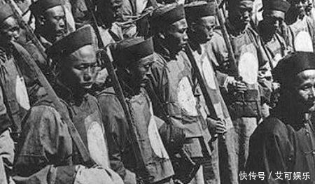 图中为集结的清朝大内侍卫。因为侍卫要贴身保护主子,所以虽然清朝军队都装备了各种枪支火炮,但是大内侍卫们依旧只能用古老的大片刀。