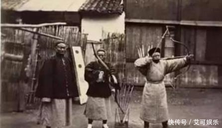 清朝正在训练的大内侍卫。在整个世界都在使用枪支的时候,中国的侍卫还在使用落后的弓箭。