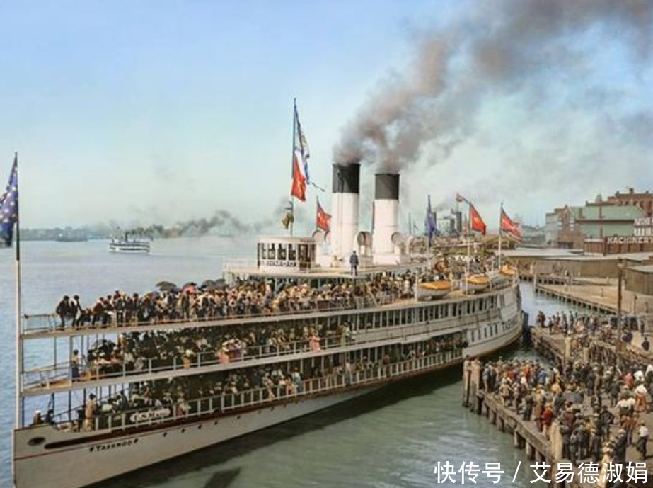 上图之中所展示的是20世纪初美国一处码头的老照片,可以看到在码头和客船上已经是人头攒动,看来在那个时代选择坐客轮出行已经是一种比较普遍的出行方式了。