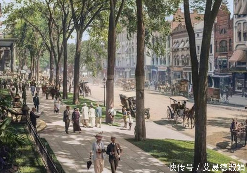 这是一座美国的大型城市的老照片,在这张照片之中我们可以看到当时的摩天大厦已经有很多了,而且有的大楼的样式与我们现代的风格几乎没有什么过多的差距,我们看大街上的行人的出行工具更多的还是步行和马车,毕竟当时汽车还没有普及!但这样的场景在同时期的我国却是不可想象的。