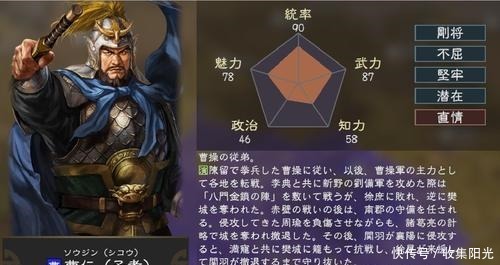 可以说如果仅看《三国志》中曹仁的本传,曹仁似乎除了晚年一次惨败外,其余表现还算出色,但能力其实是对比出来的,我们把同时期其余将领的事迹摆在一起,就可以知道所谓"曹仁决定了曹魏的下限"到底是怎么回事。曹仁为将时期因缺乏军功,军位从仅次夏侯惇一路下滑到不如李典等人。一、初投曹营时,曹仁地位确实仅次夏侯惇
