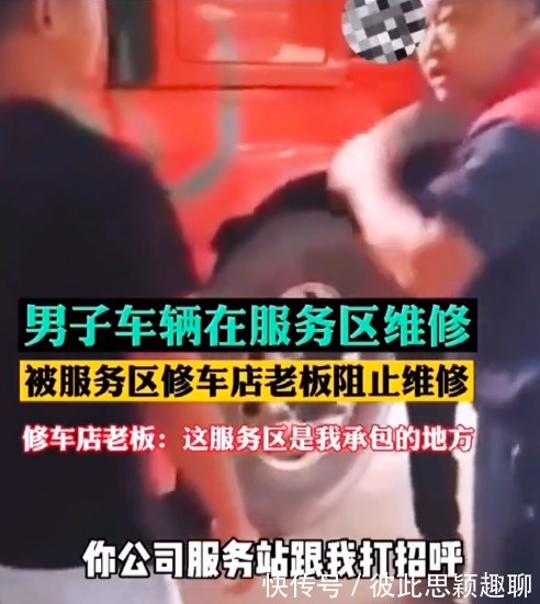 司机随后又表示,这是自己公司的服务站。没想到对方则大声怒吼道:"你公司服务站也要跟我打招呼。"司机气愤地问:"为什么要跟你打招呼?"对方则又是那番话:"这服务区就是我承包的地方"。吼完老板还喊司机去修理店看合同,但是司机则不愿意去看,并未一同前往。