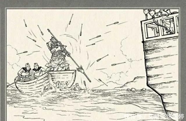 赵云第二次面对敌箭是在船上,截江夺阿斗那回,在《三国演义》的第六十一回中。