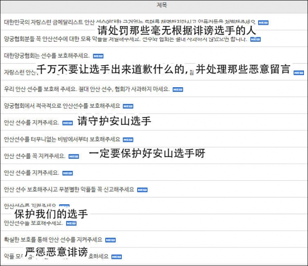 在这批网民大批攻击安山后,昨天,另一些网民开始站出来安山说话,认为攻击她的人太上纲上线,韩国射箭协会网站上也有很多网民表示,希望协会保护好选手,不要逼她出来道歉。到今天上午,该网站类似的帖子超过了3000多条。安山ins账号上的最新评论都是替她加油的。