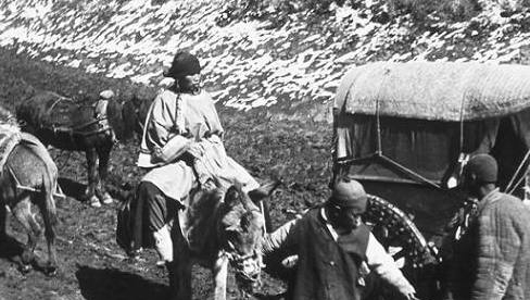 清朝老照片:旗头女子似马云,最后一张是商人的真实样子!清朝时期,旗头女子似马云,在北京城墙附近,旗人妇女带着孩子经过镜头前。