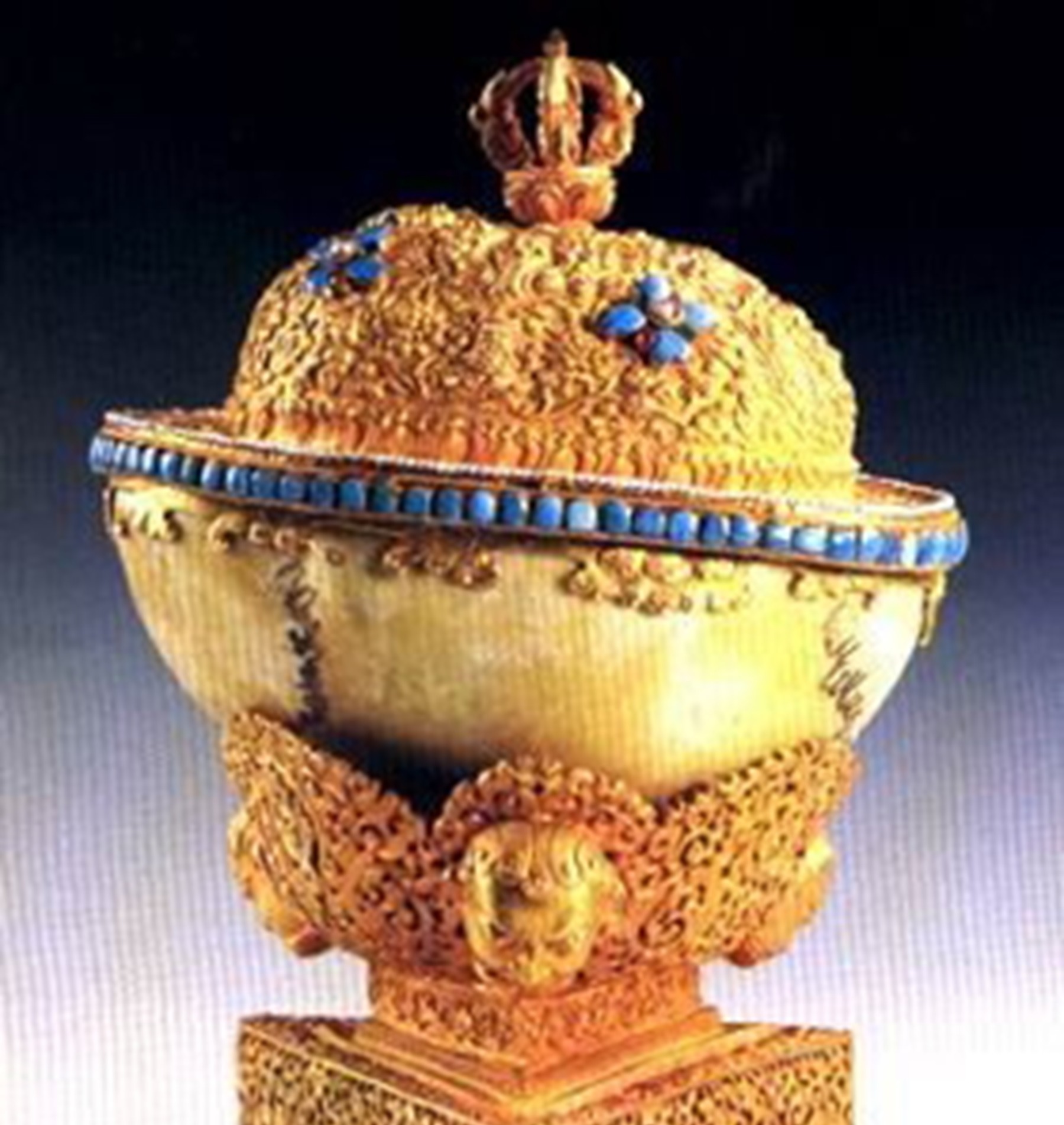 至于这颗头颅为什么可以完成保存一百余年,我们可以去看看这种碗是如何被制作出来的。这种碗通常是用人类颅骨制作出来的,同时制作者在制作时会在颅骨周边镶上银,又或者是金。这样做出来的碗既有顶盖,也有底座,而它的底座大都是满缀代表火焰花纹的三角形状。