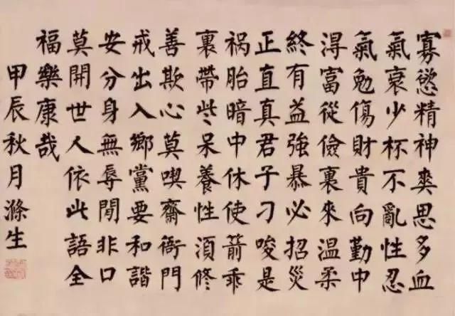 他的楷书劲健刚拔,竖起了一面承唐继宋明而刚柔相济的正书旗帜。他的行书劲健遒俊而华美。他的小楷与小行书是整个清代的典范。他应是与同代包世臣、何绍基齐名的大书家。