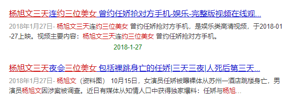 并且,在任娇没有去世之前,媒体还拍到了杨勋文三天约会三位美女的画面。第一天是跟某公司的高层约会,第二天是跟任娇在街上拉拉扯扯,第三天则是跟一个粉帽子的美女回家,并一夜未归。
