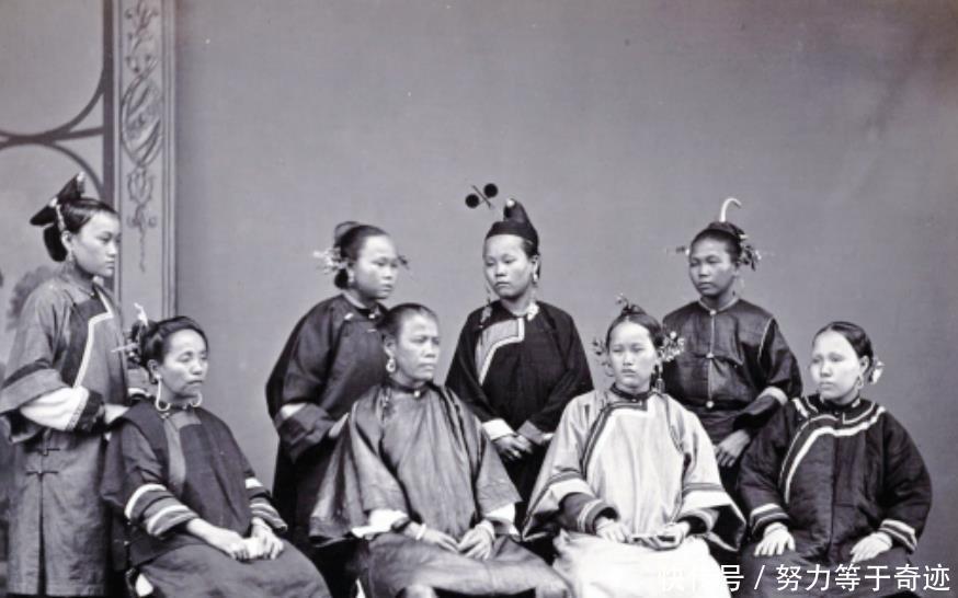 这是晚清年间的福建妇女,这些福建妇女除了衣着华丽之外,而且其头上的三把刀发型十分抢眼,再加上其淡漠冷静的神情,更是让人觉得霸气侧漏,不敢靠近。
