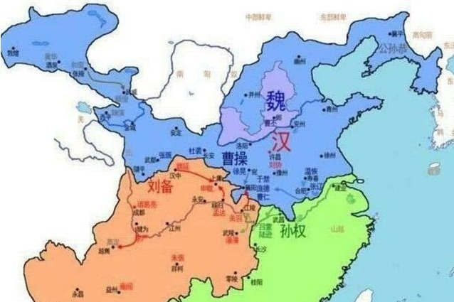从地图上我们就可以看到,蜀国的地盘要比东吴的地盘还要大,而这个时候的蜀国,有100%的益州,80%的荆州以及100%的汉中,但是随后关羽大意失荆州,刘备病逝白帝城,而使蜀国急剧衰落。