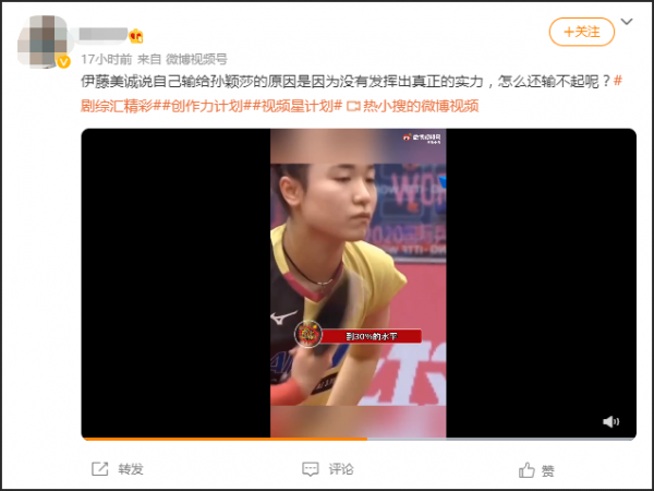 这样的讯息给伊藤美诚塑造了一个“输不起、找借口”的形象。“放狠话?多少斤两啊?”——都想看伊藤美诚的脸被抽“肿”。