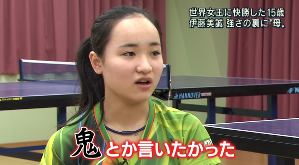 “妈妈非常严格,我简直不想把她当作妈妈,而是想叫她‘魔鬼’。”伊藤美诚在节目中表示。