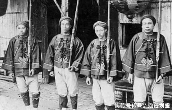 这张照片中是广州地区的清兵。他们手上拿着的虽然是近代的先进火器。可是他们的军服依旧还是落后的那种,宽敞的袖子其实根本不利于火器的使用。头上的头巾看起来也和阿三的军队有些相似。