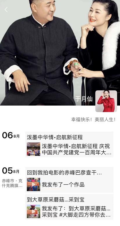 于月仙和丈夫张学松的感情很好,在张雪松的短视频平台发布的视频都是于月仙。