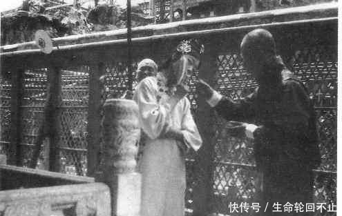 晚清真实老照片:照片上的画面是一太监为一女子在点烟,而那位女子便是清朝最后一位皇后,也是中国最后一位皇后,她的名字叫婉容!