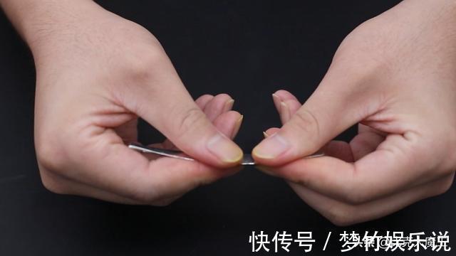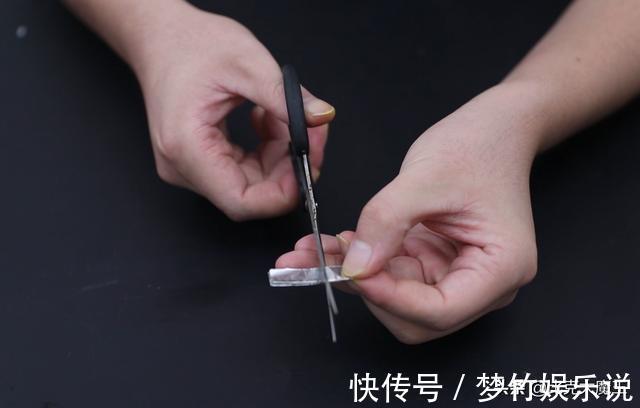 折完后我们把它捋平整,然后对折一下,剪下一小段