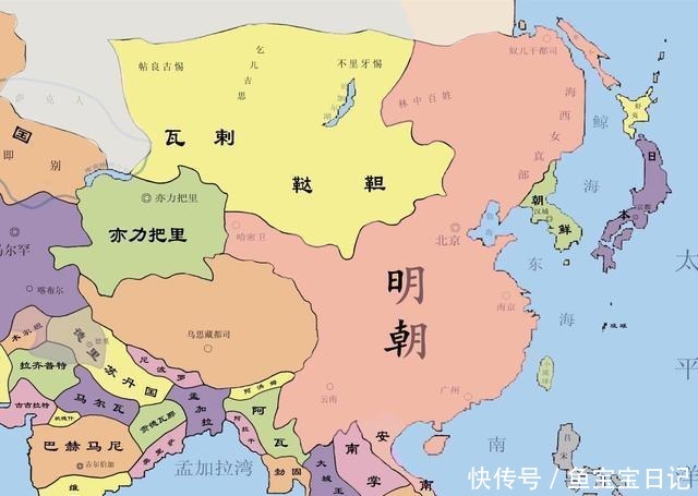 而明朝的局势就有些尴尬了。首先,明朝并未真正消灭元朝,只是把蒙古的势力从中原汉地赶出了,也就是过去蒙元统治的汉地地区独立了。人们将退回大漠的蒙古称为"北元",也就是和明朝并立存在的政权。虽然蒙古在明朝已经分裂了漠南、喀尔喀、漠西三部分,但是蒙古的势力一直很强盛,甚至控制的地区还超过了明朝。蒙古不仅控制着蒙古高原,还控制着西域,后期还在青藏高原建立了和硕特汗国。