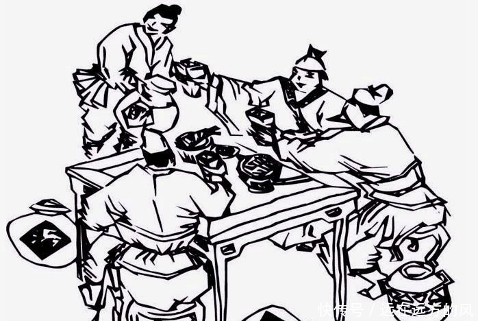 边吃边说:"强盗也不是小家子气的人,至少都是慷慨英雄!我也是不拘小节的人,大家不要拘谨。"