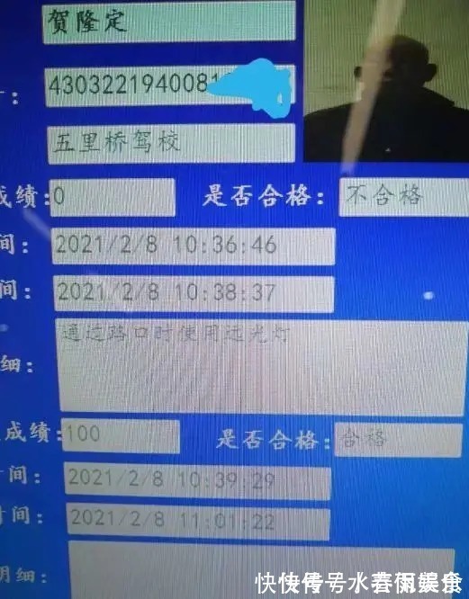 考科目一前,贺隆定顺利通过了体检和针对 70 周岁以上考驾照老人的 '' 三力 ( 记忆力、判断力、反应力 ) '' 测试。随后两个月参加 4 次考试,科一科四都是 96 分,科二科三 100 分。除了科二考两次,其他都一次通过。