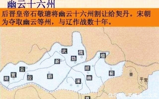 那为什么一直都是叫"幽云十六州"呢?这是因为行政区划改变了,刚刚不是说了,还有一个易州吗?这就十五个了,然后辽兴宗重熙年间,蓟州的遵化县被升级为景州,又多了一个州,所以辽朝占据的宋地的行政区划,又是十六个了,所以按照习惯,"幽云十六州"还是这么一直叫了下去。